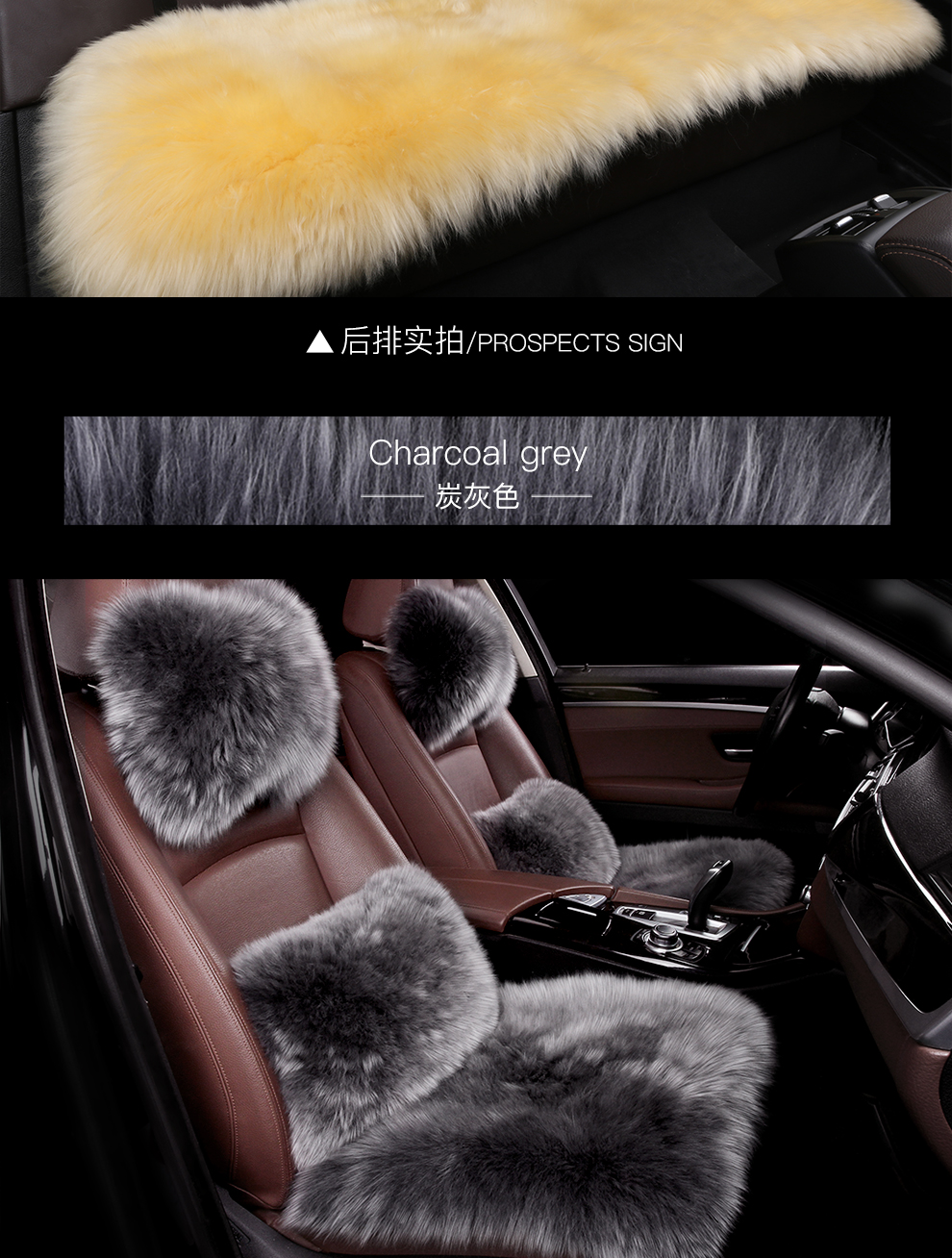 汽车座垫オーストラリア纯乌尔克肖三个套羊剪绒冬天长毛绒可爱保温三个套-【象牙白】