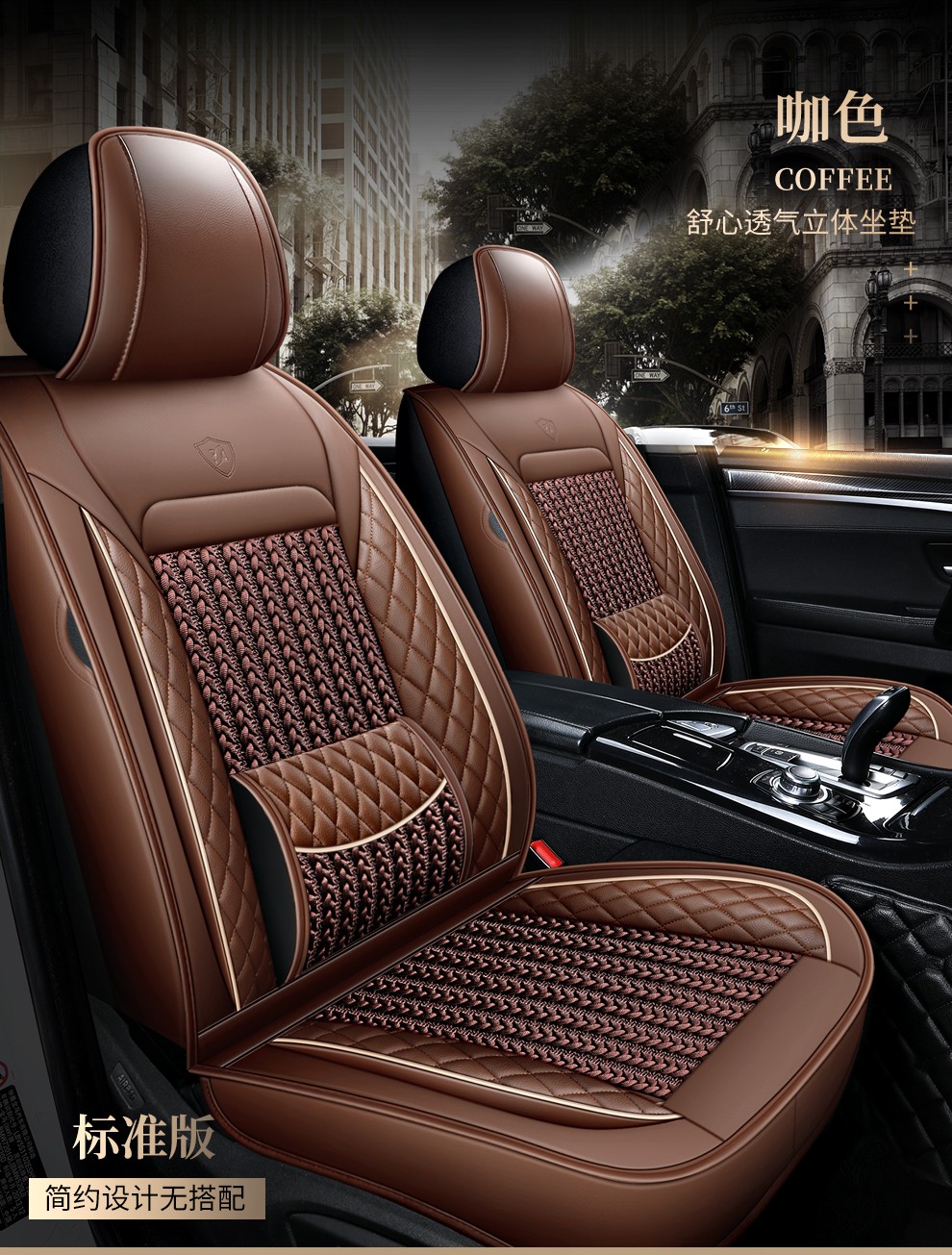 梦多福 2021新款四季通用汽车坐垫秋冬夏季冰丝汽车坐套四季通用凉垫车垫4S店全包座垫座套 米色 标准版 夏季冰丝坐垫